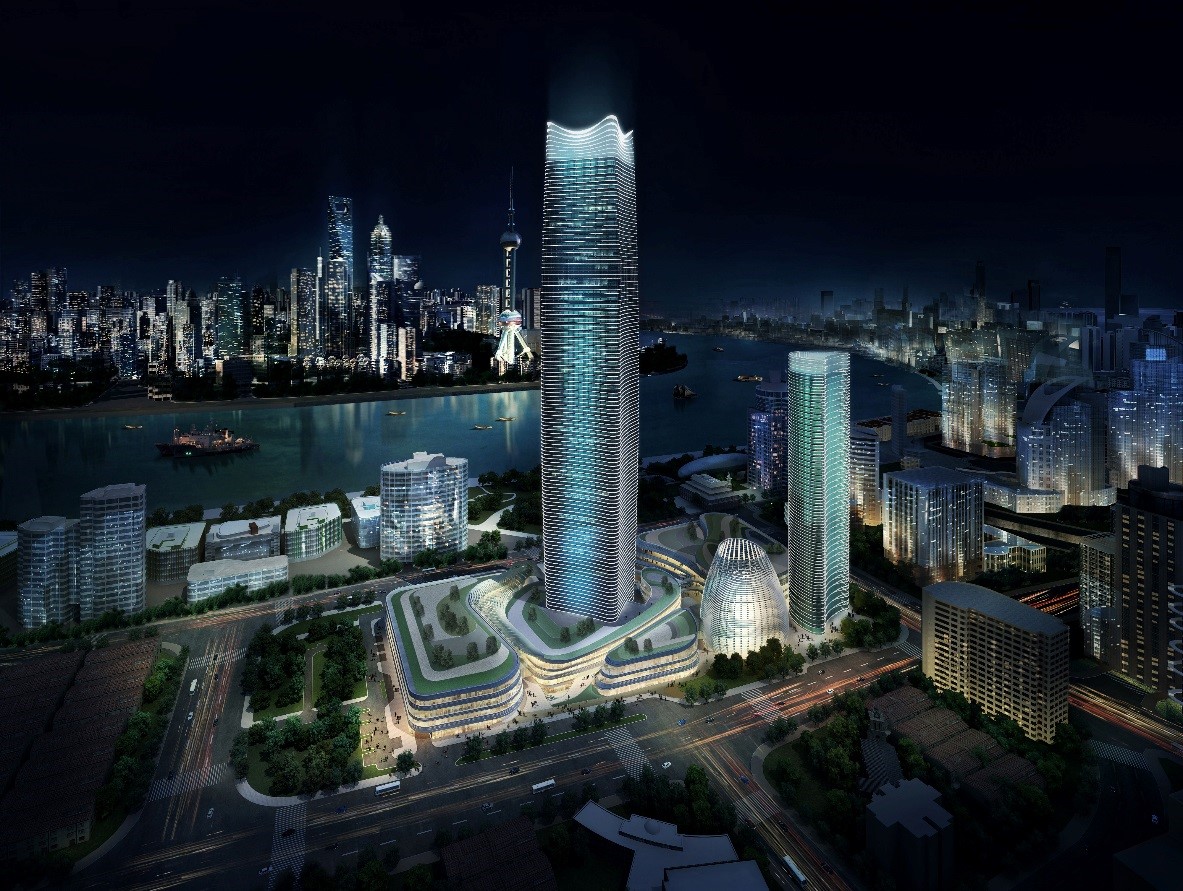 白玉蘭廣場地處北外灘黃浦江沿岸地區,與陸家嘴隔江相望??偨ㄖ娣e42萬平方米,其中地上26萬平方米,地下16萬平方米,包括一座66層、高320米的辦公塔樓和一座39層、高172米的酒店塔樓