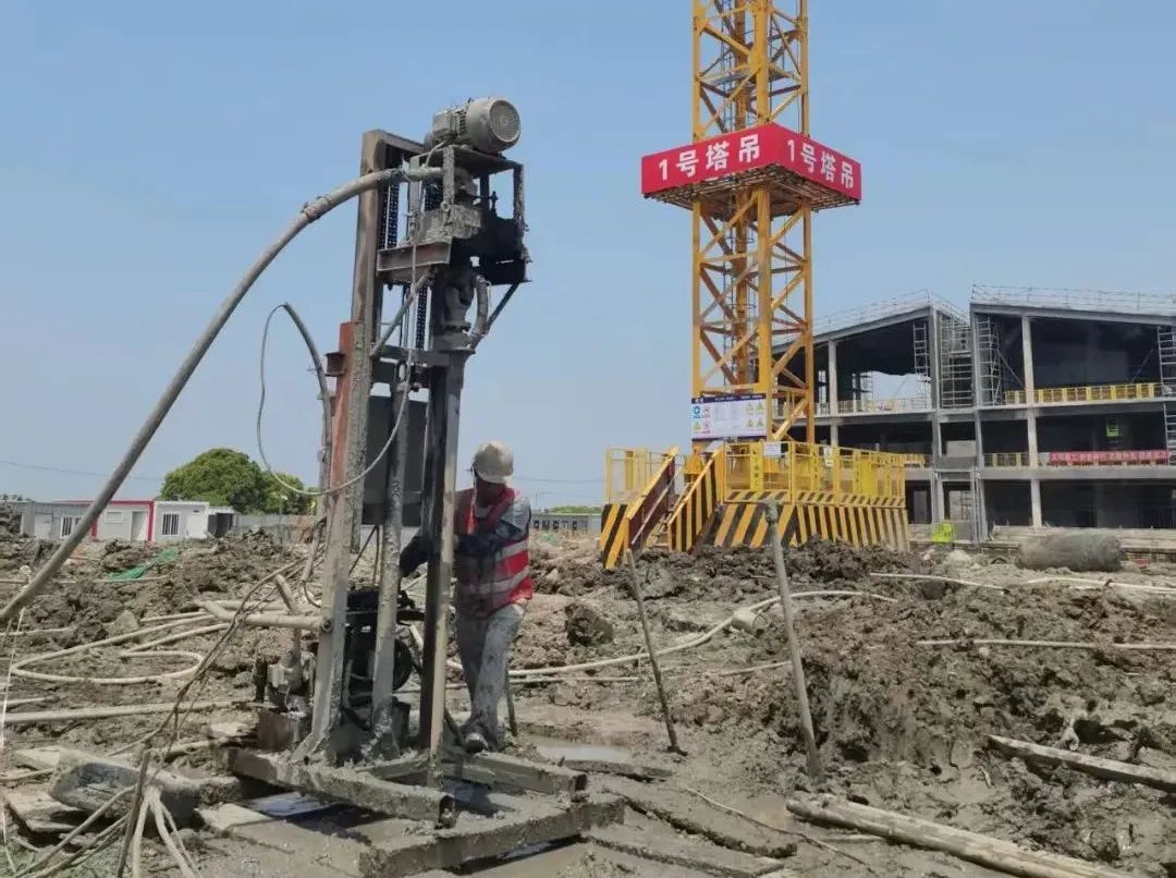 水鄉客廳創智引擎項目現場目前正在進行鉆井作業和地埋管道鋪設。該項目地埋管深度120m,采用單U型埋管、單管單連的設計方案,結合樁基工程協同作業,工程難度大,作業面復雜,施工安全質量要求極高。劉月琴總工對現場的施工進度、技術要求和施工技術參數進行了詳細了解,對施工工藝組織了檢查,對項目現場不同施工界面的交叉作業提出了安全管理要求。